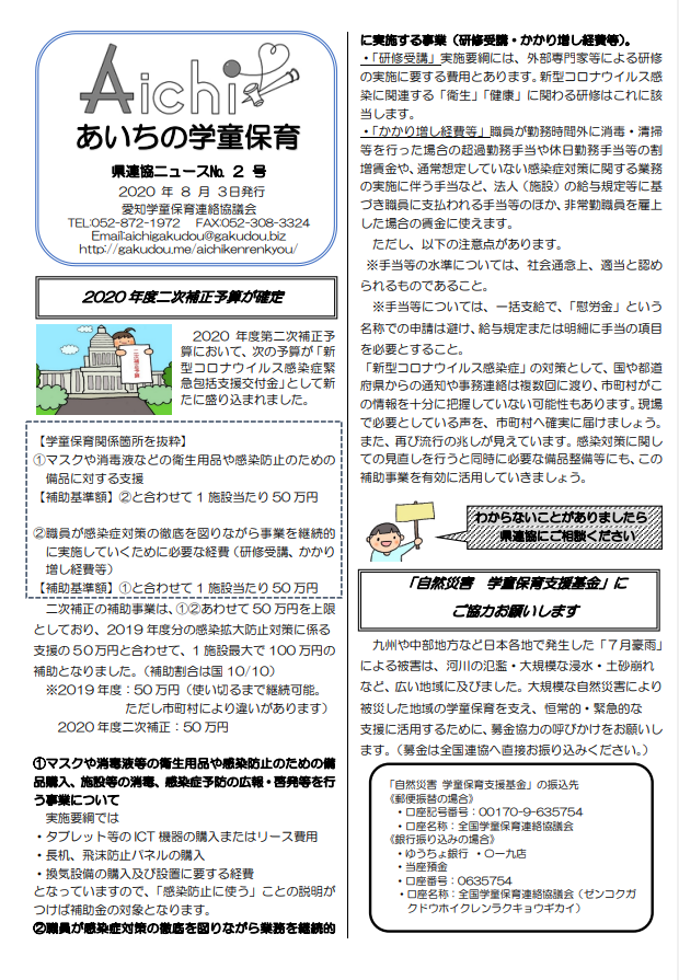 ・「自然災害 学童保育支援基金」にご協力お願いします。