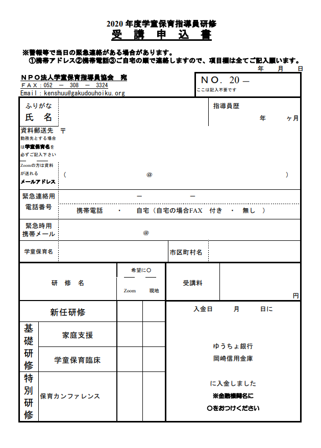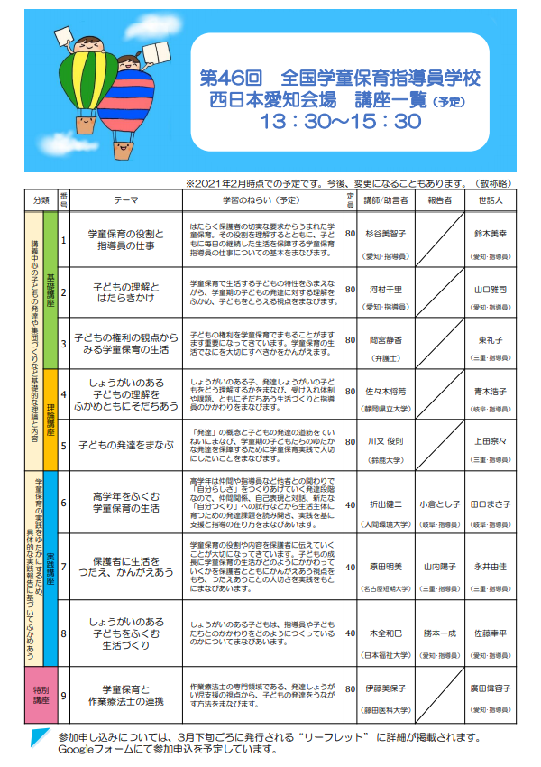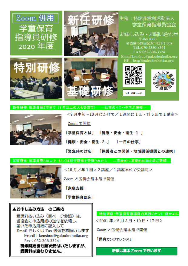 研修の種類や申込方法などは→学童保育指導員協会のメニューへ