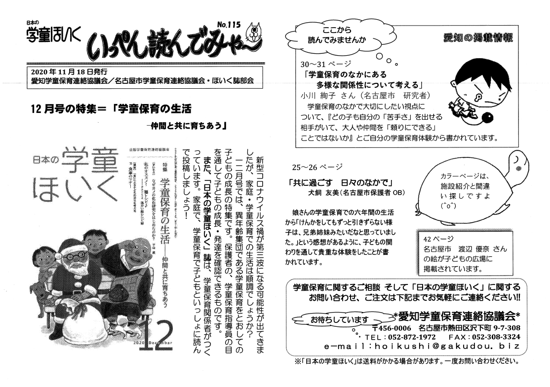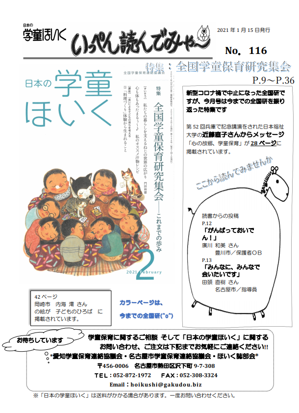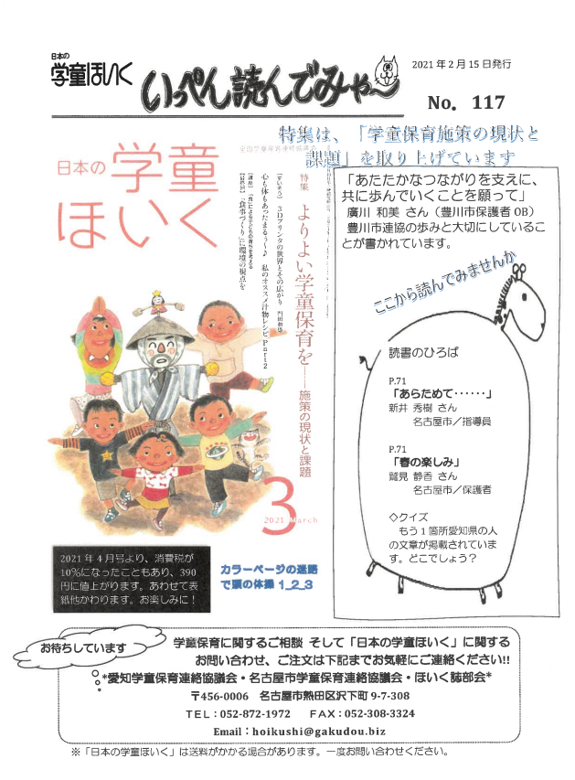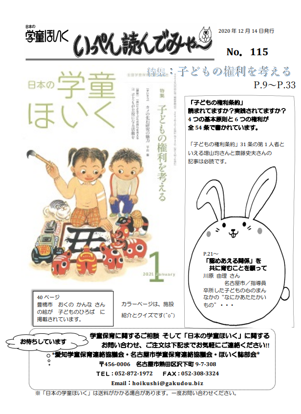 日本の学童ほいく誌7月号発送に合わせ、6月15日に「いっぺん読んでみゃ~No.109」が発行されました。ほいく誌に同梱されています。是非手に取ってお読みください。詳しくは、日本の学童ほいく誌のメニューをごらんください。