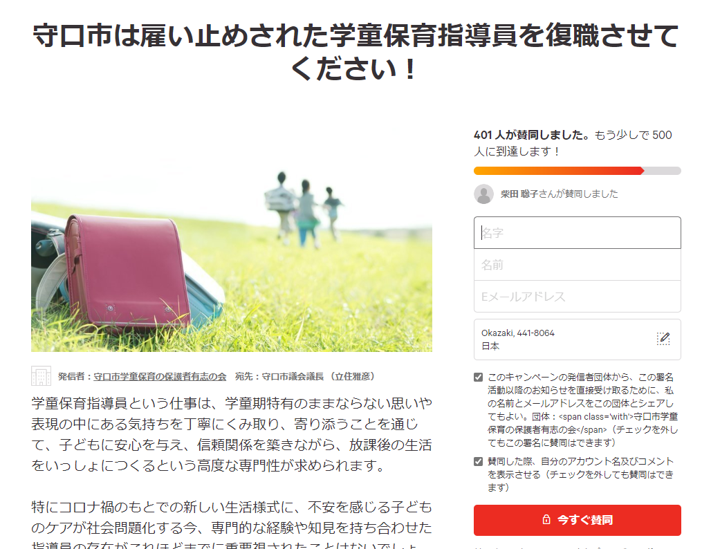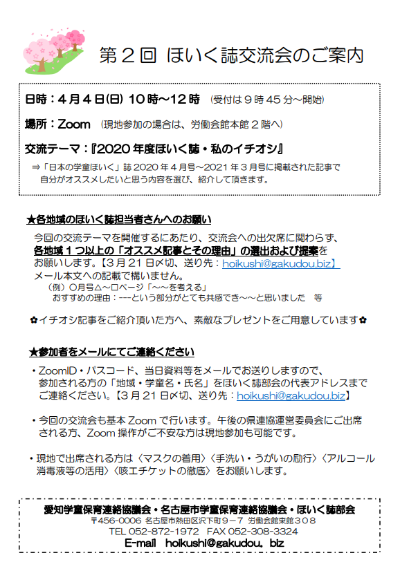 ・みんなで話そう学童保育ひろばin岡崎 再延期について