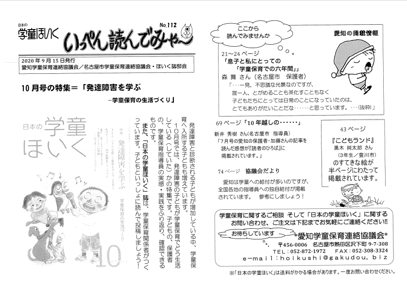 日本の学童ほいく誌8月号が発送されました。いっぺん読んでみゃ~No.110も同梱されています。