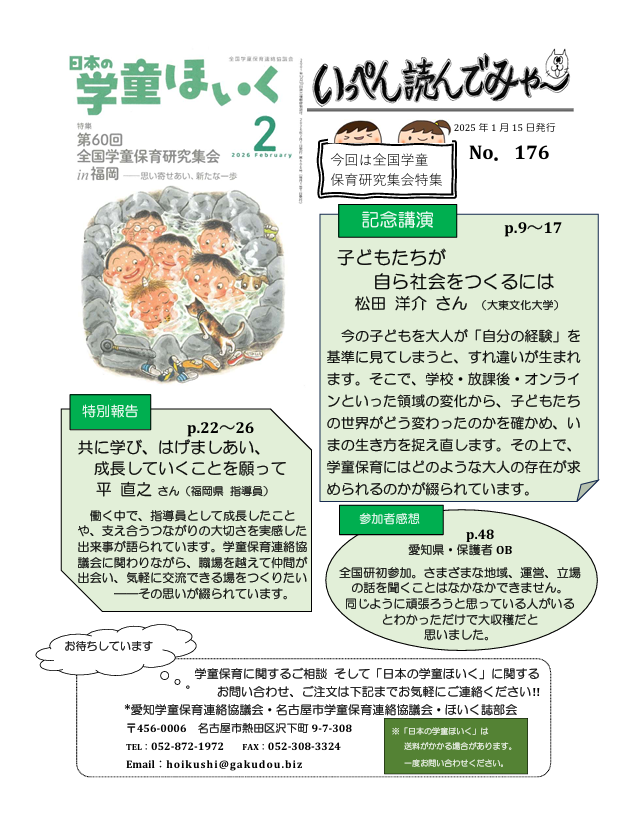 日本の学童ほいく2026年2月号の発行に合わせて、いっぺん読んでみゃ~No.176が発行されました!まずはここから、読んでみませんか?