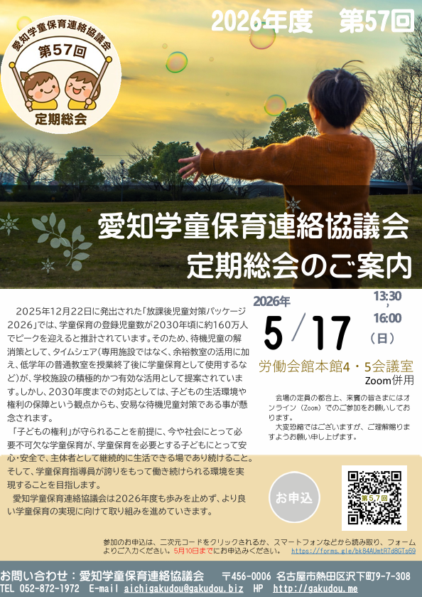 第57回愛知学童保育連絡協議会 定期総会のご案内