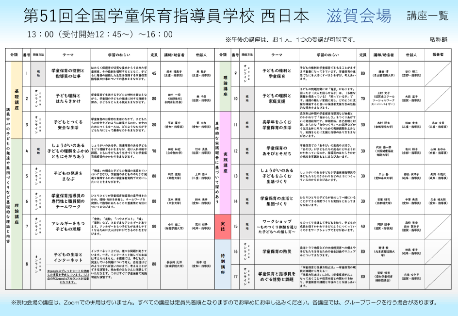 第51回全国学童保育指導員学校西日本滋賀会場参加申し込みが開始となりました!