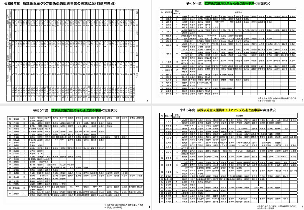 令和6年度 放課後児童クラブ関係処遇改善事業の実施状況詳細が公表されました
